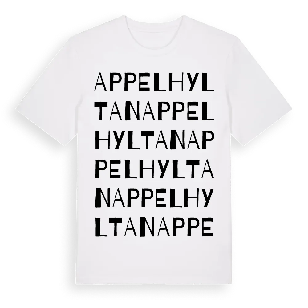 En ordlek byggd på Appelhyltans namn. Subtilt och klurig – ett motiv som bara de som verkligen känner platsen fullt ut förstår. Premium bomull, unisex – från Appelhyltan i Jönköpings län.