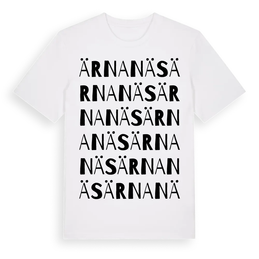 Ärnanäs ordlek t-shirt är inspirerad av byn Ärnanäs i Jönköpings län, Sverige. Tröjan är designad för dig som har en speciell koppling till platsen – oavsett om du bor här, har rötterna här eller bara älskar Ärnanäs.