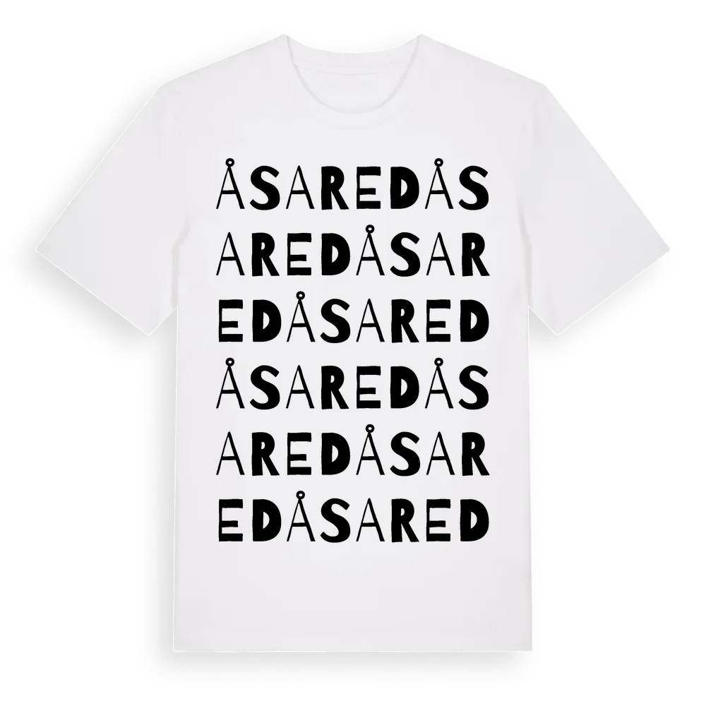 Åsared ordlek t-shirt är inspirerad av Åsared i Jönköpings län, Sverige. Tröjan är designad för dig som har en speciell koppling till platsen – oavsett om du bor här, har rötterna här eller bara älskar Åsared.