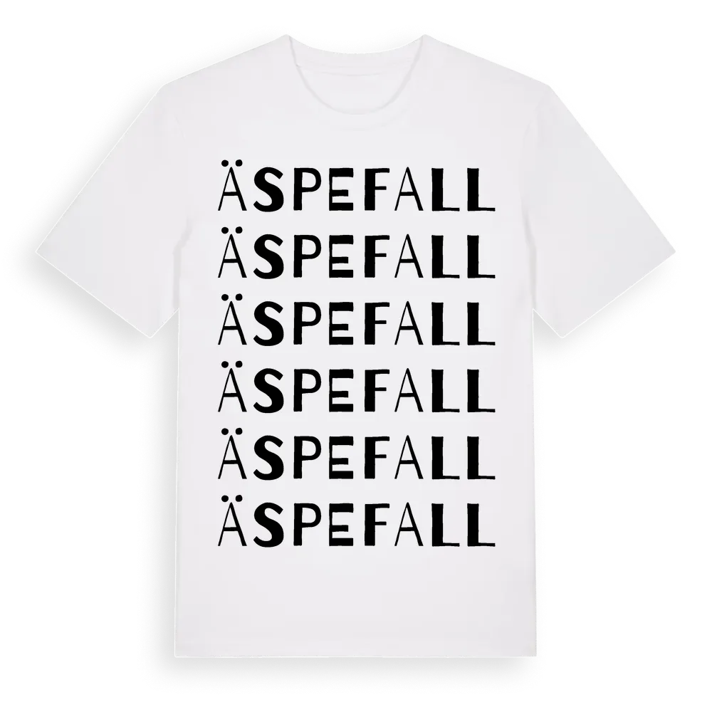 En ordlek byggd på Äspefalls namn. Subtilt och klurig – ett motiv som bara de som verkligen känner platsen fullt ut förstår. Premium bomull, unisex – från byn Äspefall i Jönköpings län.