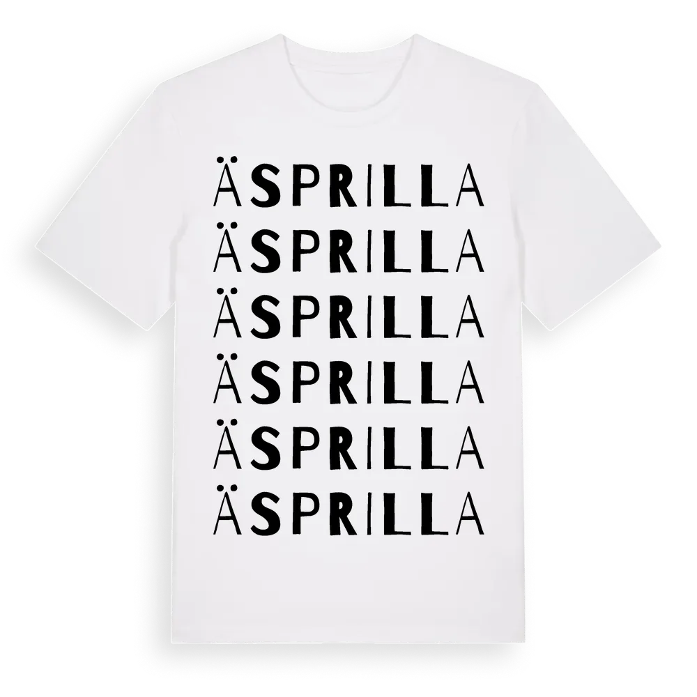 Äsprilla ordlek t-shirt är inspirerad av byn Äsprilla i Jönköpings län, Sverige. Tröjan är designad för dig som har en speciell koppling till platsen – oavsett om du bor här, har rötterna här eller bara älskar Äsprilla.