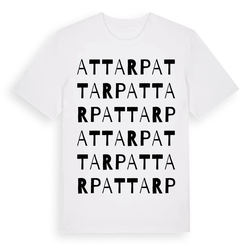 En ordlek byggd på Attarps namn. Subtilt och klurig – ett motiv som bara de som verkligen känner platsen fullt ut förstår. Premium bomull, unisex – från Attarp i Jönköpings län.