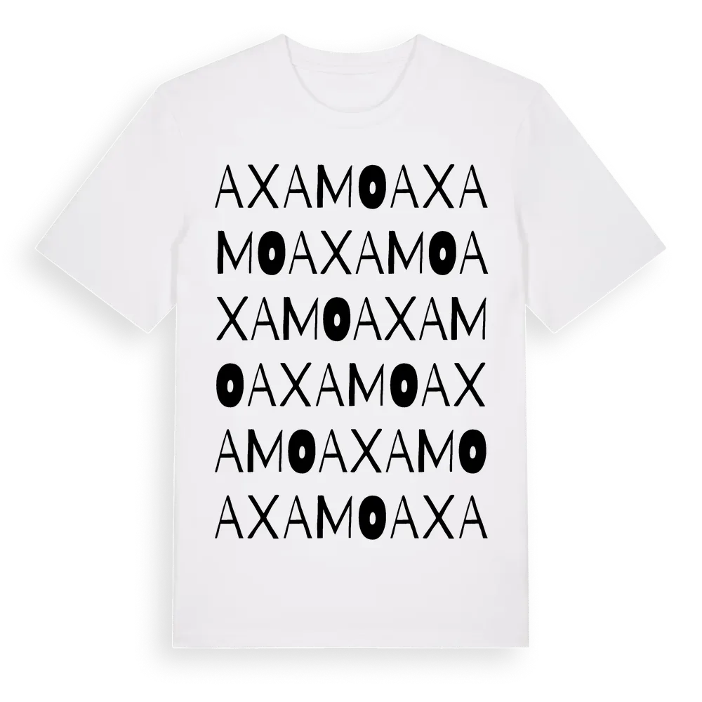 En ordlek byggd på Axamos namn. Subtilt och klurig – ett motiv som bara de som verkligen känner platsen fullt ut förstår. Premium bomull, unisex – från byn Axamo i Jönköpings län.