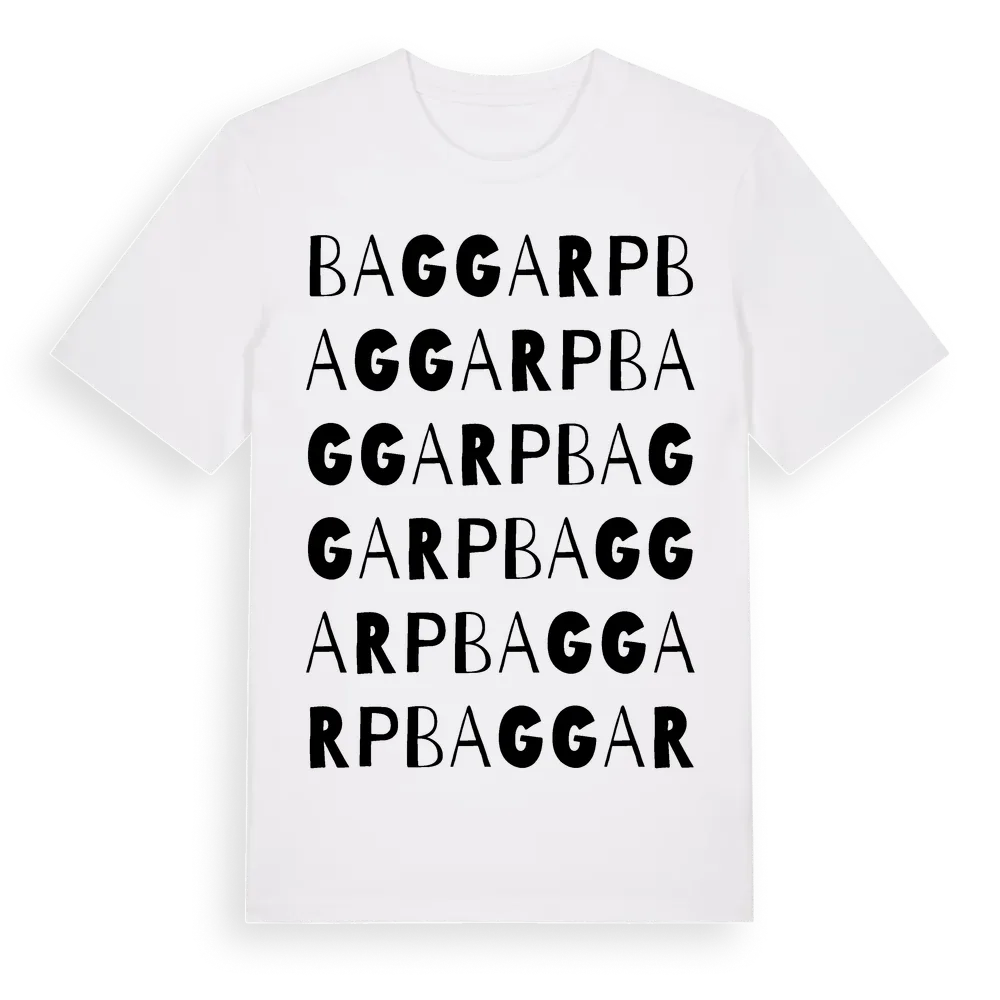 Baggarp ordlek t-shirt är inspirerad av Baggarp i Jönköpings län, Sverige. Tröjan är designad för dig som har en speciell koppling till platsen – oavsett om du bor här, har rötterna här eller bara älskar Baggarp.