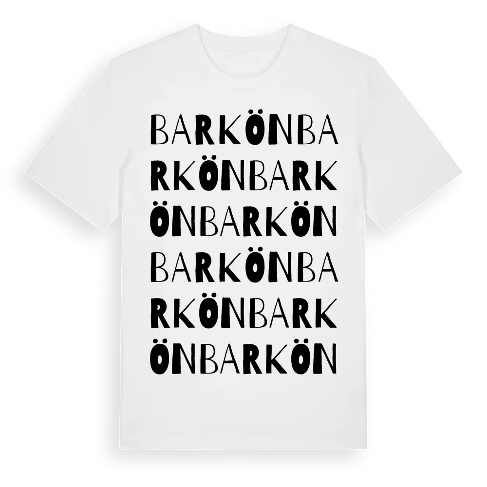Barkön ordlek t-shirt är inspirerad av Barkön i Jönköpings län, Sverige. Tröjan är designad för dig som har en speciell koppling till platsen – oavsett om du bor här, har rötterna här eller bara älskar Barkön.