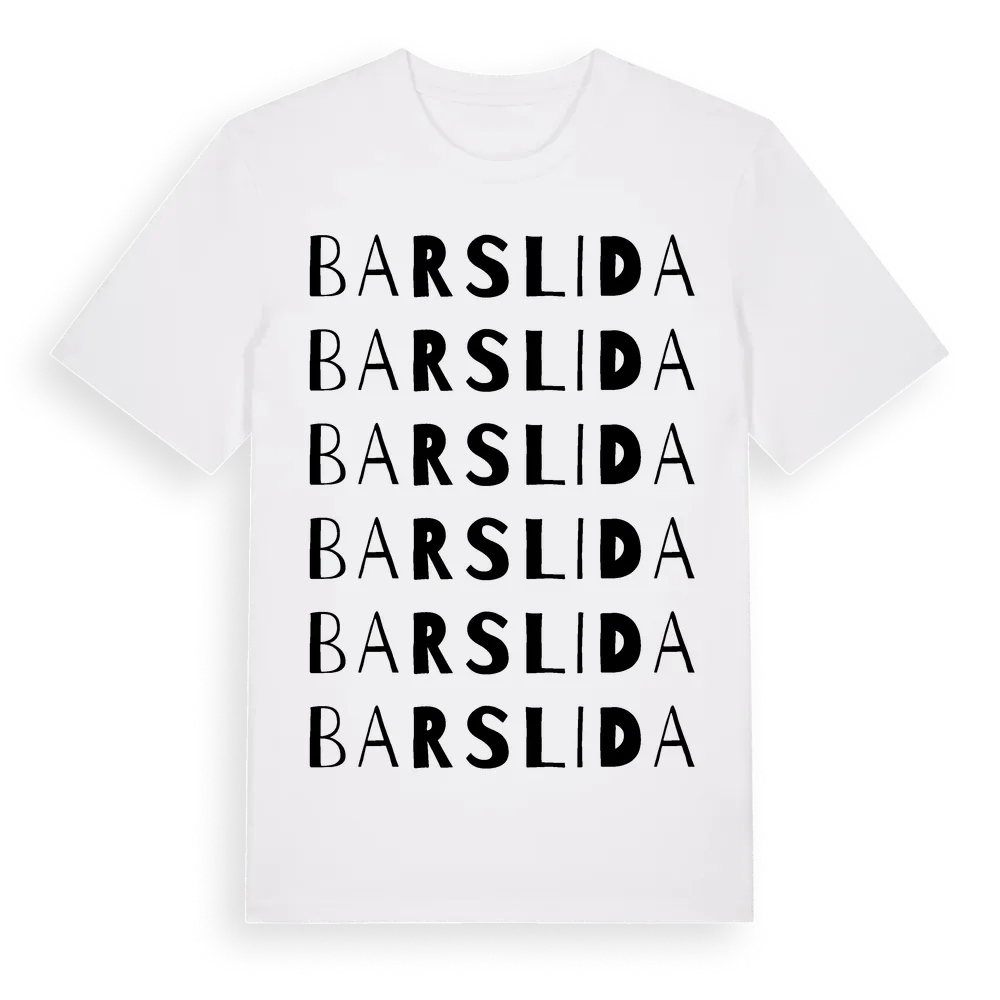 En ordlek byggd på Barslidas namn. Subtilt och klurig – ett motiv som bara de som verkligen känner platsen fullt ut förstår. Premium bomull, unisex – från Barslida i Jönköpings län.