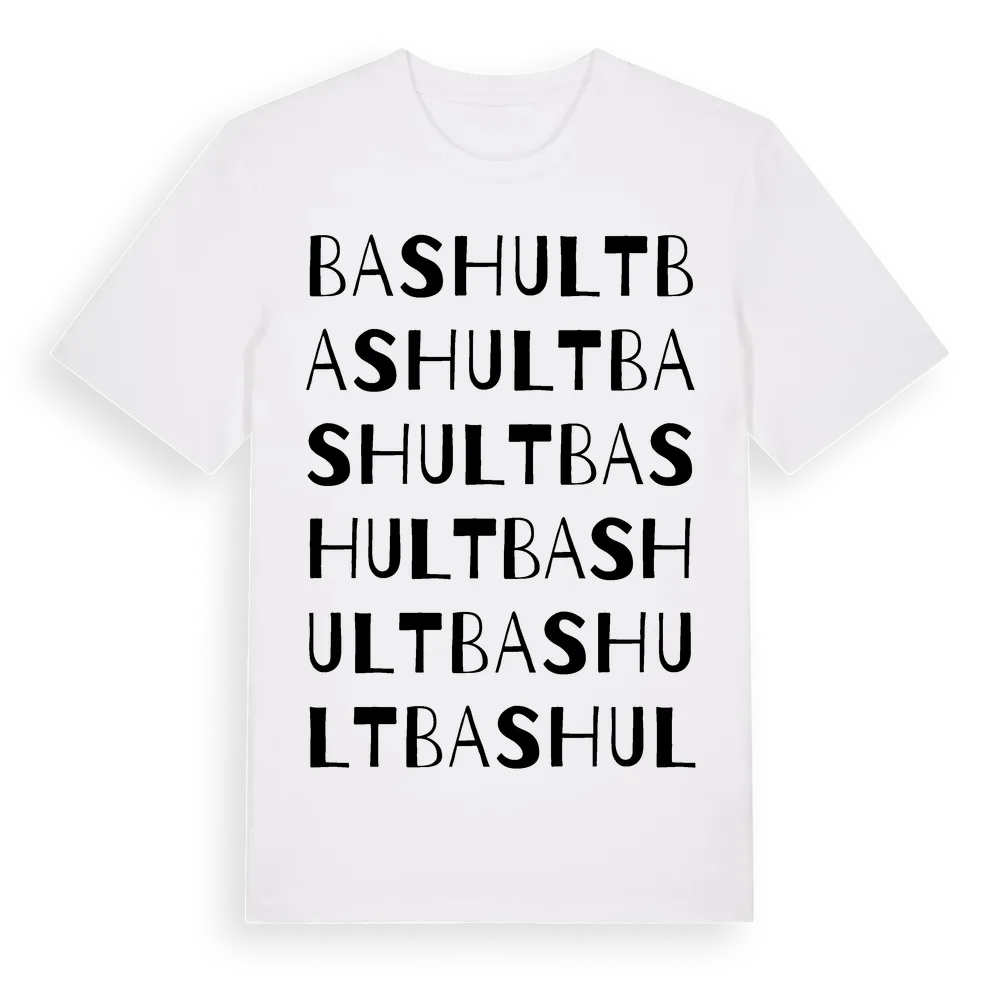 En ordlek byggd på Bashults namn. Subtilt och klurig – ett motiv som bara de som verkligen känner platsen fullt ut förstår. Premium bomull, unisex – från byn Bashult i Jönköpings län.