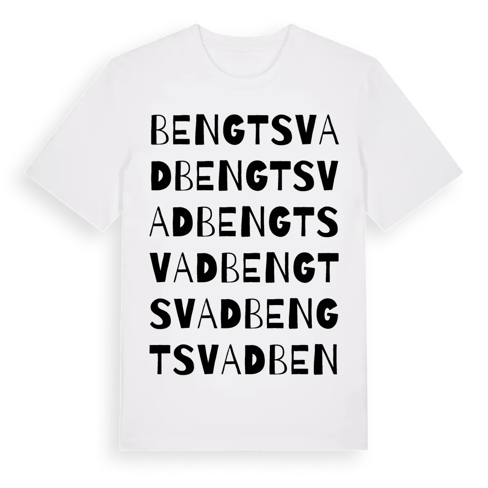 Bengtsvad ordlek t-shirt är inspirerad av Bengtsvad i Jönköpings län, Sverige. Tröjan är designad för dig som har en speciell koppling till platsen – oavsett om du bor här, har rötterna här eller bara älskar Bengtsvad.