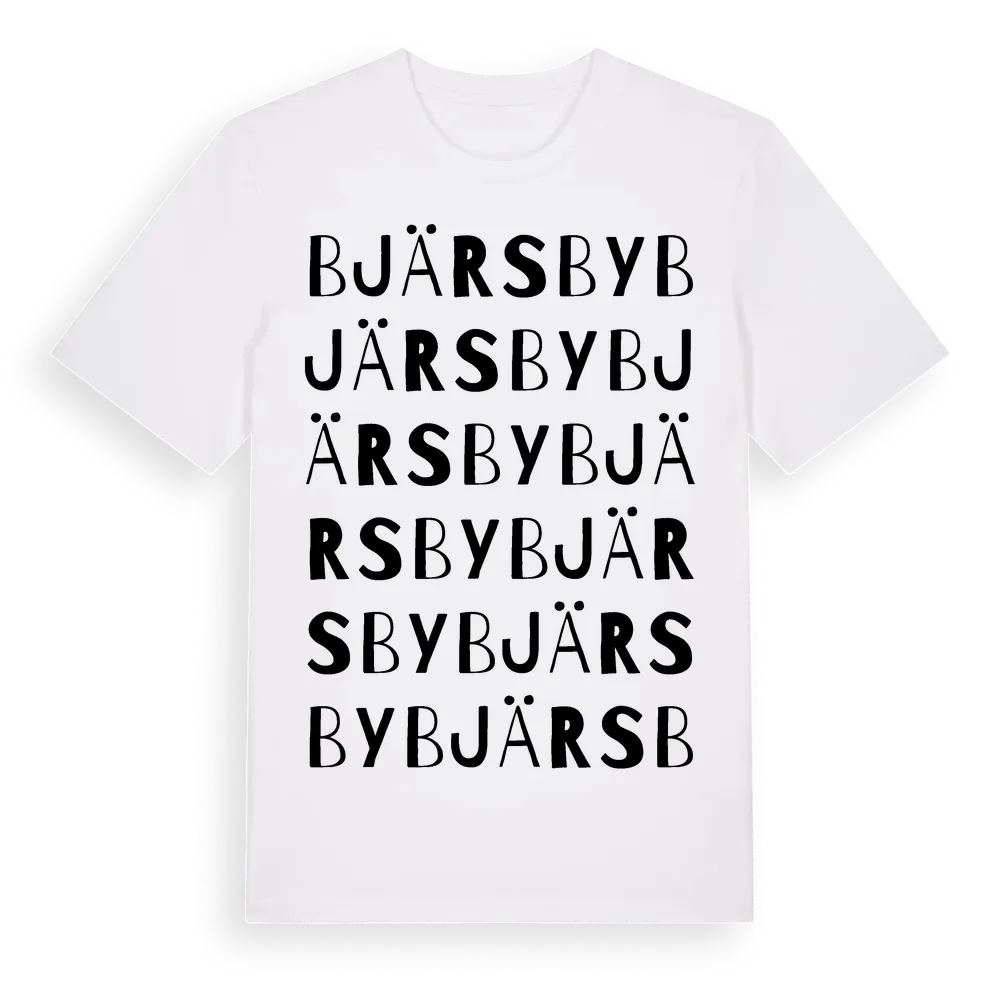 Bjärsby ordlek t-shirt är inspirerad av Bjärsby i Jönköpings län, Sverige. Tröjan är designad för dig som har en speciell koppling till platsen – oavsett om du bor här, har rötterna här eller bara älskar Bjärsby.
