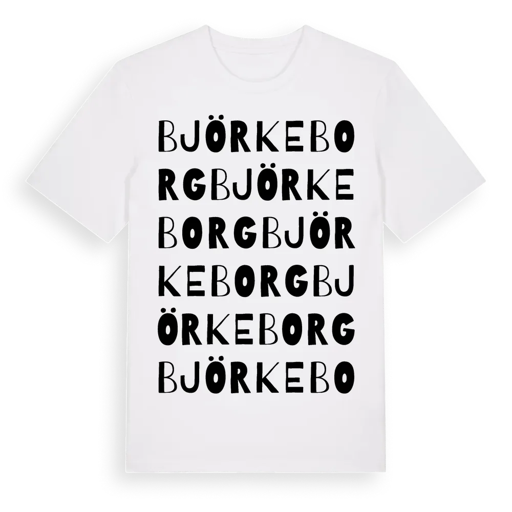 Björkeborg ordlek t-shirt är inspirerad av Björkeborg i Jönköpings län, Sverige. Tröjan är designad för dig som har en speciell koppling till platsen – oavsett om du bor här, har rötterna här eller bara älskar Björkeborg.