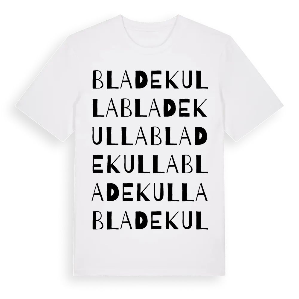 Bladekulla ordlek t-shirt är inspirerad av byn Bladekulla i Jönköpings län, Sverige. Tröjan är designad för dig som har en speciell koppling till platsen – oavsett om du bor här, har rötterna här eller bara älskar Bladekulla.