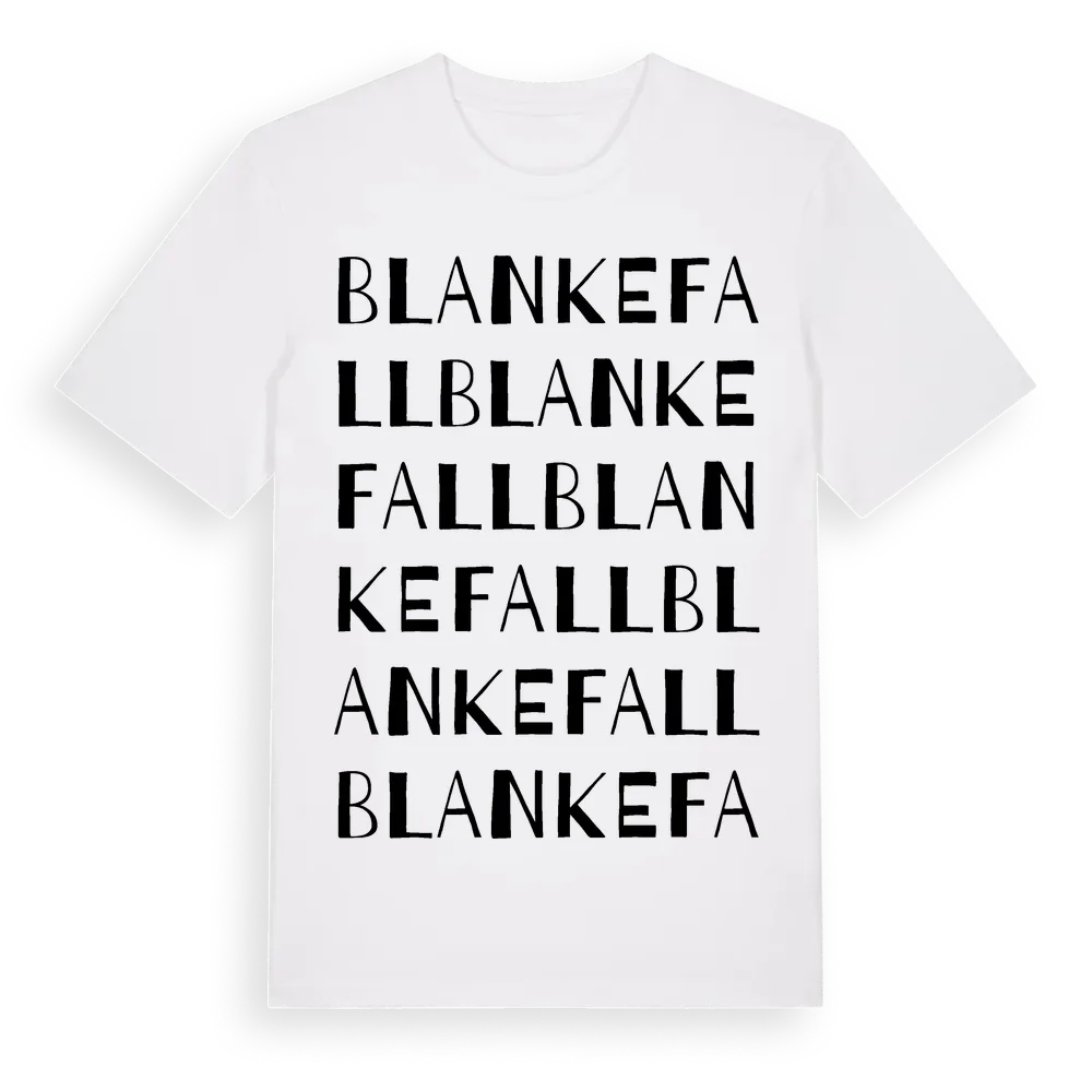Blankefall ordlek t-shirt är inspirerad av byn Blankefall i Jönköpings län, Sverige. Tröjan är designad för dig som har en speciell koppling till platsen – oavsett om du bor här, har rötterna här eller bara älskar Blankefall.