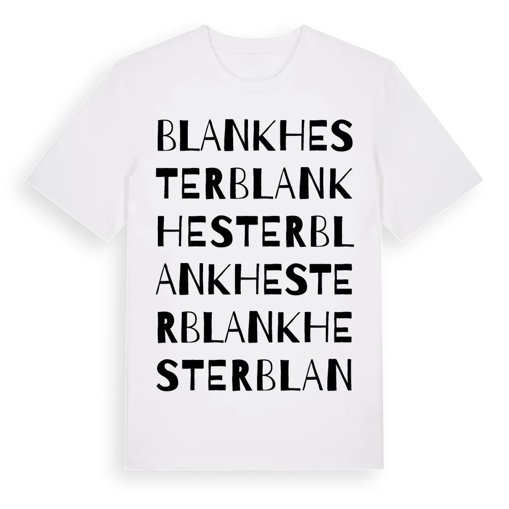 Blankhester ordlek t-shirt är inspirerad av byn Blankhester i Jönköpings län, Sverige. Tröjan är designad för dig som har en speciell koppling till platsen – oavsett om du bor här, har rötterna här eller bara älskar Blankhester.
