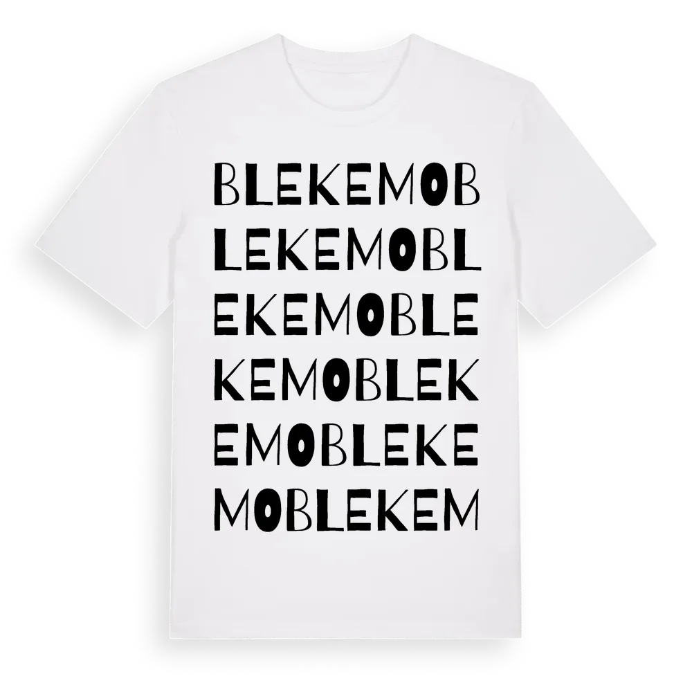 Blekemo ordlek t-shirt är inspirerad av Blekemo i Jönköpings län, Sverige. Tröjan är designad för dig som har en speciell koppling till platsen – oavsett om du bor här, har rötterna här eller bara älskar Blekemo.
