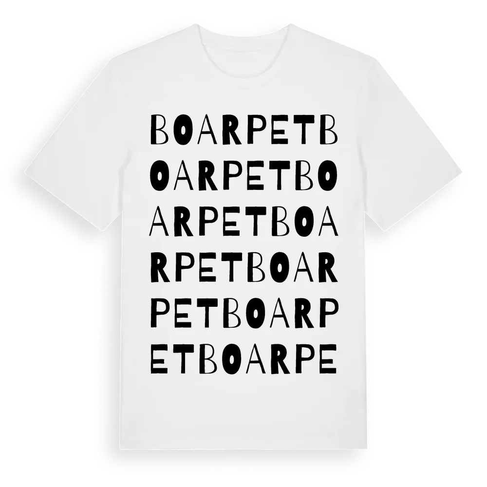 Boarpet ordlek t-shirt är inspirerad av byn Boarpet i Jönköpings län, Sverige. Tröjan är designad för dig som har en speciell koppling till platsen – oavsett om du bor här, har rötterna här eller bara älskar Boarpet.