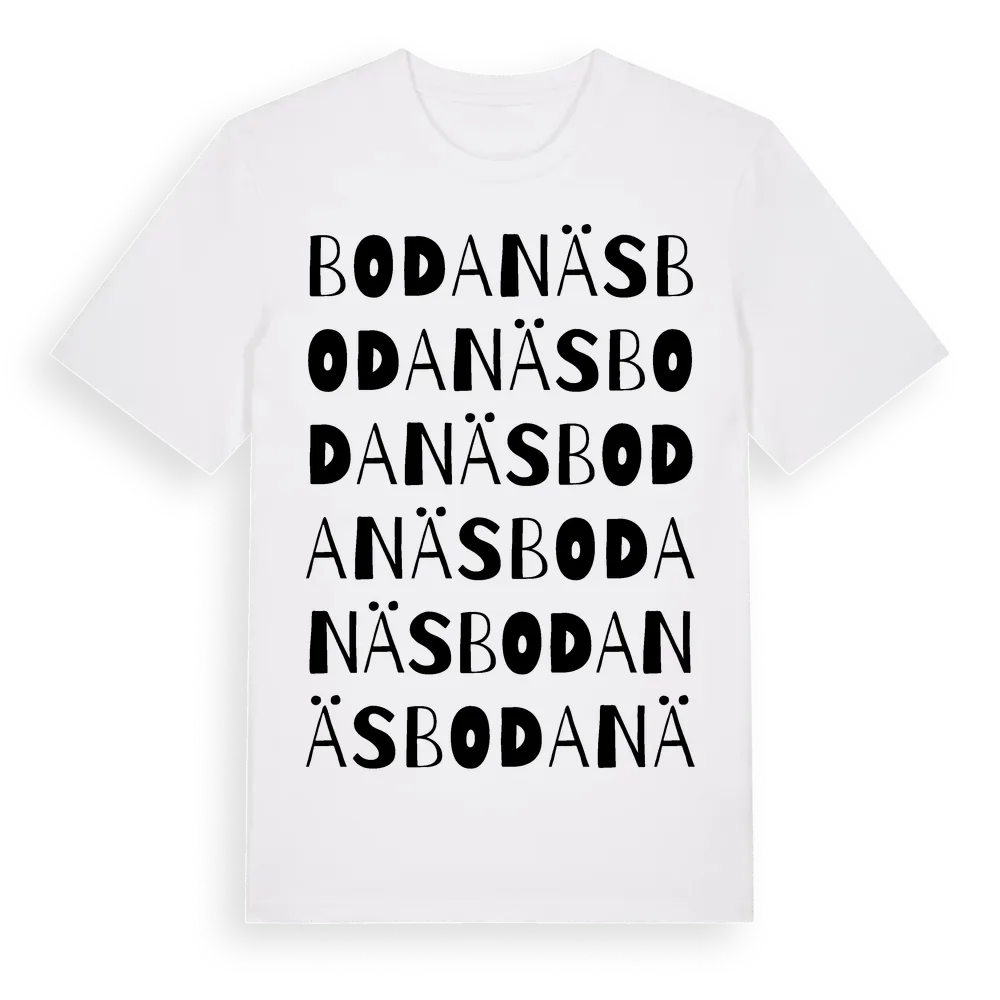Bodanäs ordlek t-shirt är inspirerad av Bodanäs i Jönköpings län, Sverige. Tröjan är designad för dig som har en speciell koppling till platsen – oavsett om du bor här, har rötterna här eller bara älskar Bodanäs.