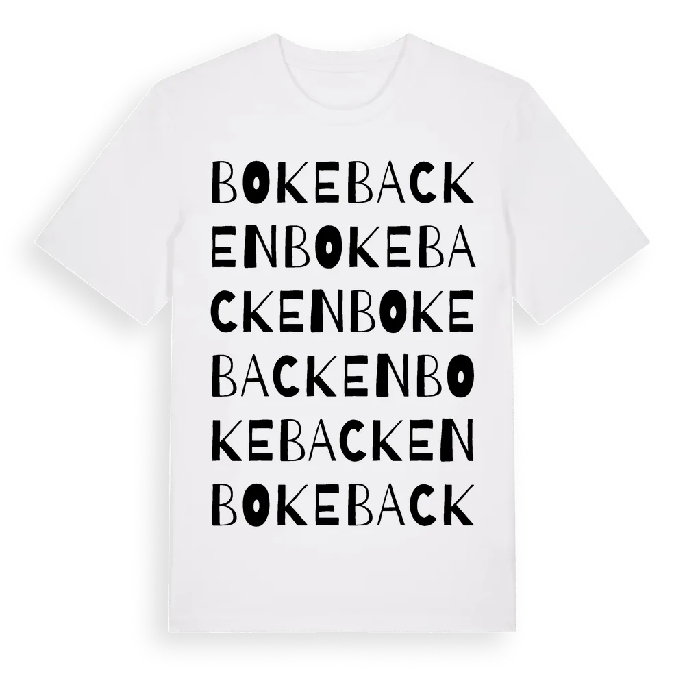Bokebacken ordlek t-shirt är inspirerad av Bokebacken i Jönköpings län, Sverige. Tröjan är designad för dig som har en speciell koppling till platsen – oavsett om du bor här, har rötterna här eller bara älskar Bokebacken.