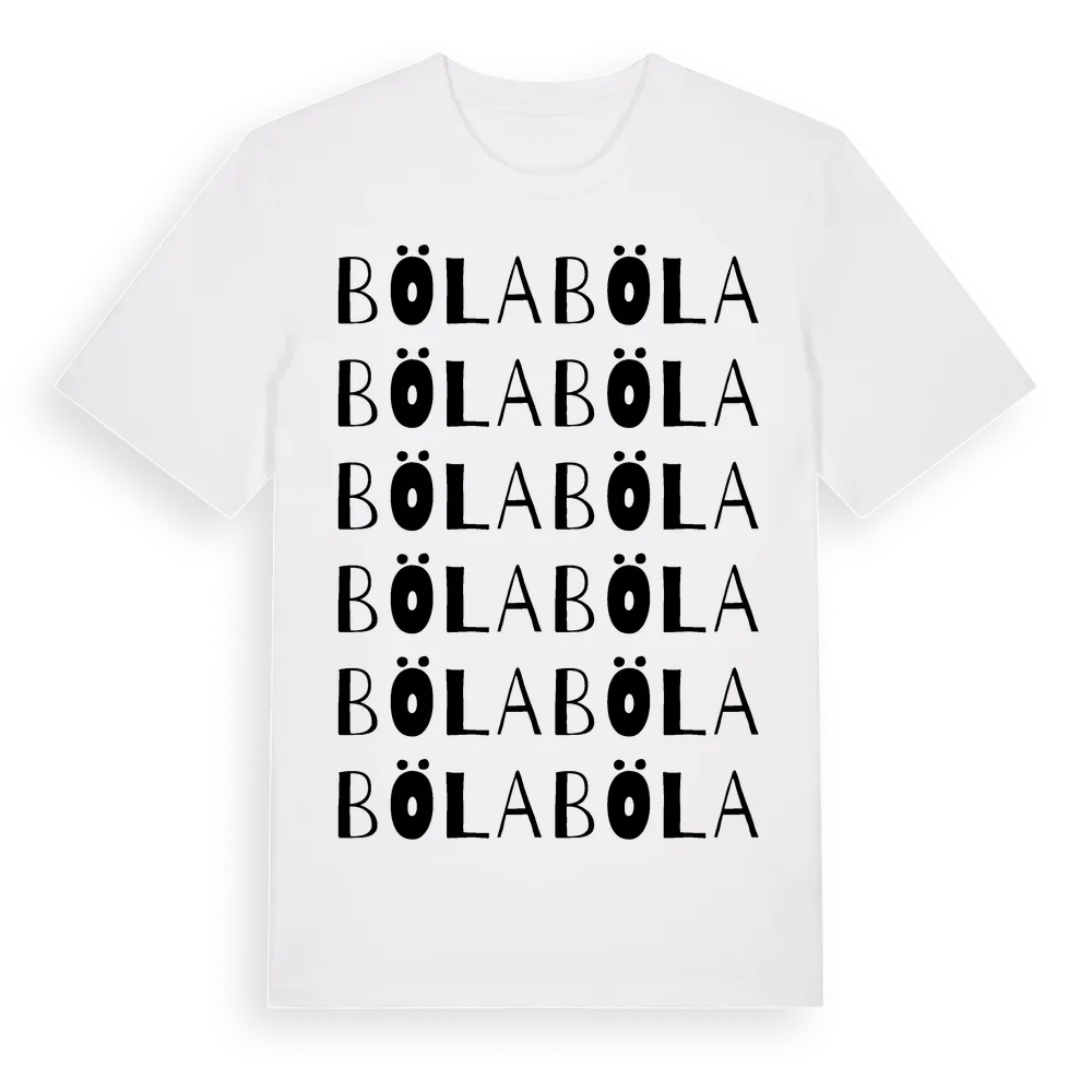 Böla ordlek t-shirt är inspirerad av byn Böla i Jönköpings län, Sverige. Tröjan är designad för dig som har en speciell koppling till platsen – oavsett om du bor här, har rötterna här eller bara älskar Böla.