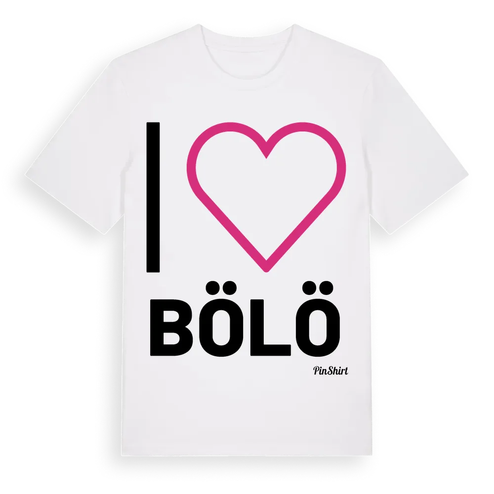 Det klassiska "I ❤ Bölö"-motivet i stort format som täcker hela bröstet. För dig som vill visa kärleken till Bölö på riktigt. Premium bomull, unisex – från Bölö i Jönköpings län.