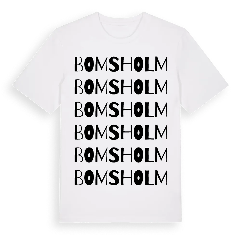 En ordlek byggd på Bomsholms namn. Subtilt och klurig – ett motiv som bara de som verkligen känner platsen fullt ut förstår. Premium bomull, unisex – från Bomsholm i Jönköpings län.