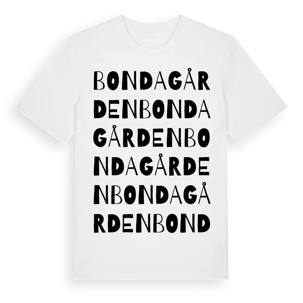 Bondagården ordlek t-shirt är inspirerad av Bondagården i Jönköpings län, Sverige. Tröjan är designad för dig som har en speciell koppling till platsen – oavsett om du bor här, har rötterna här eller bara älskar Bondagården.