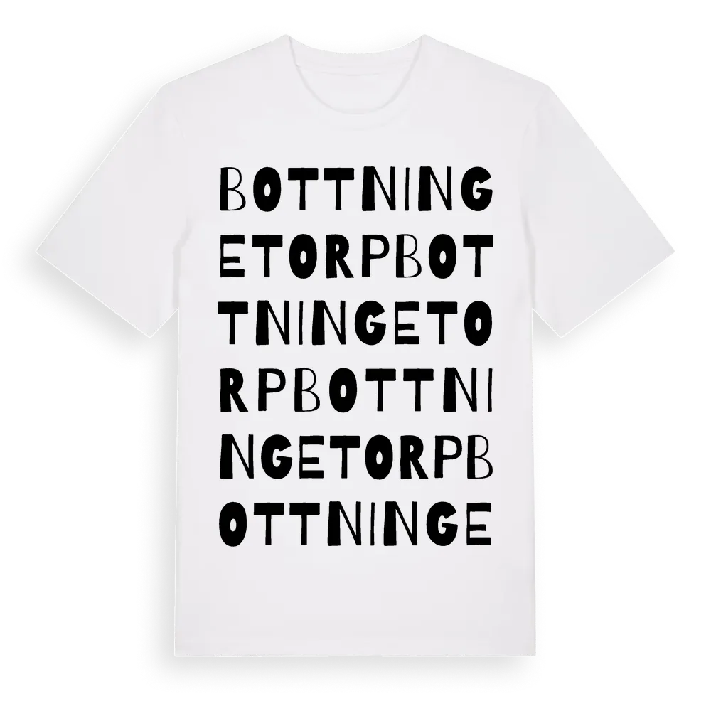 Bottningetorp ordlek t-shirt är inspirerad av Bottningetorp i Jönköpings län, Sverige. Tröjan är designad för dig som har en speciell koppling till platsen – oavsett om du bor här, har rötterna här eller bara älskar Bottningetorp.