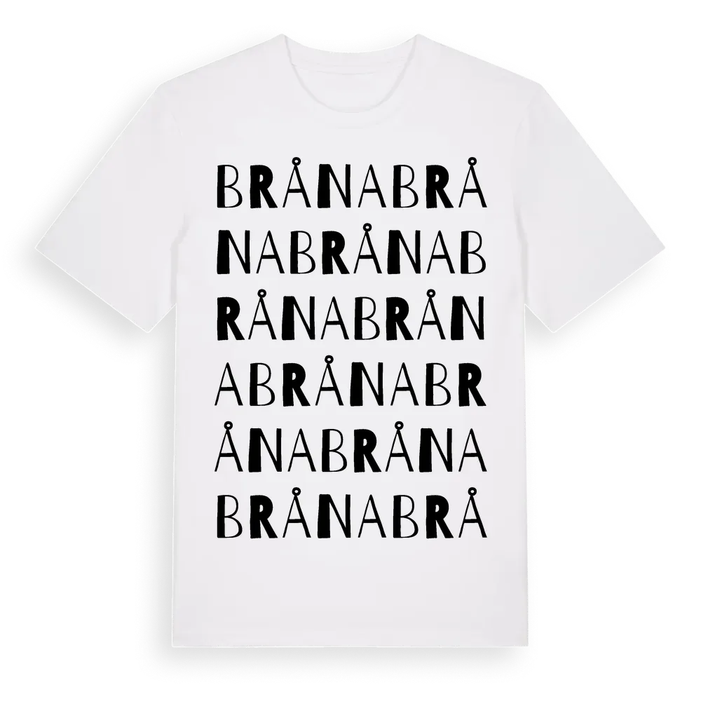 Bråna ordlek t-shirt är inspirerad av byn Bråna i Jönköpings län, Sverige. Tröjan är designad för dig som har en speciell koppling till platsen – oavsett om du bor här, har rötterna här eller bara älskar Bråna.