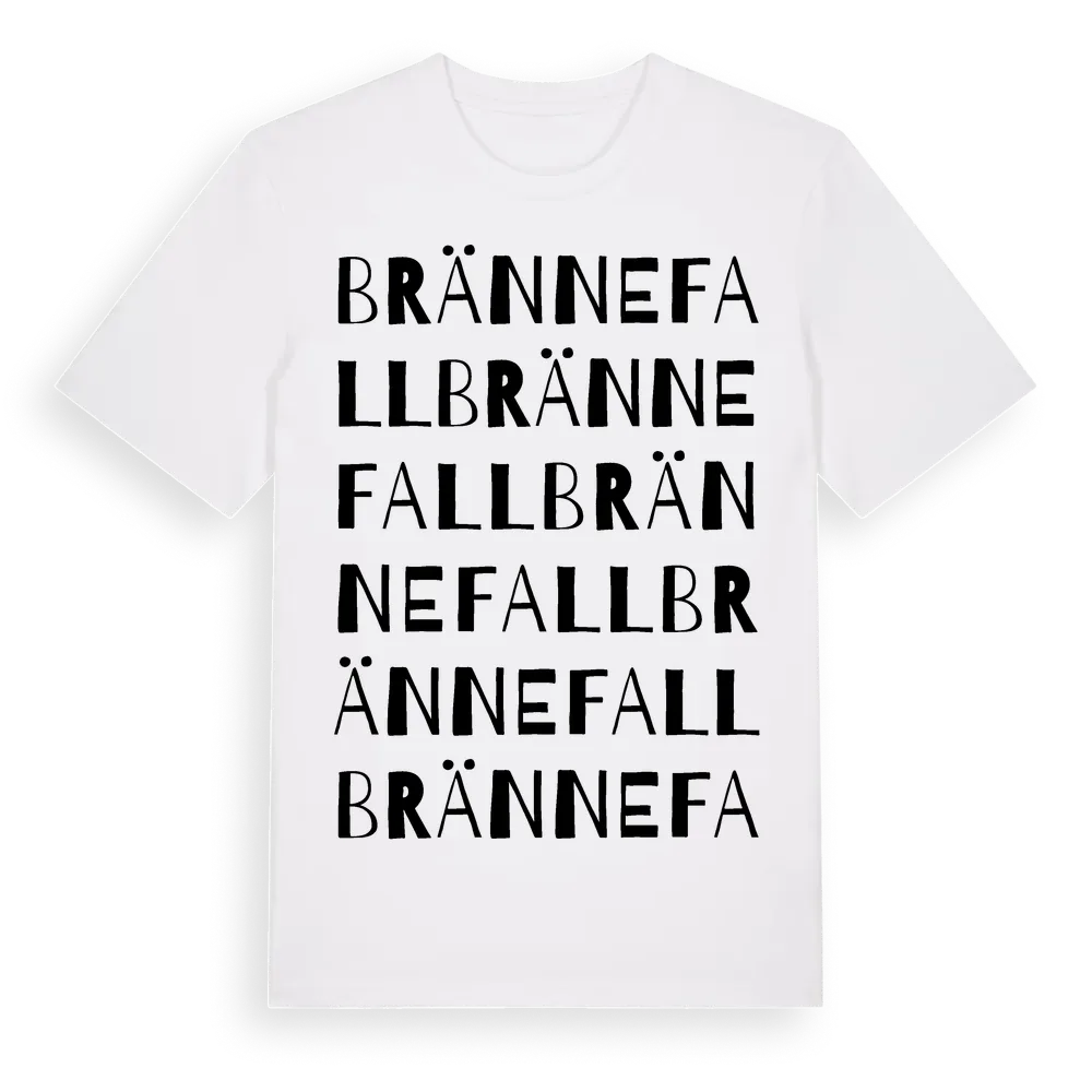 Brännefall ordlek t-shirt är inspirerad av Brännefall i Jönköpings län, Sverige. Tröjan är designad för dig som har en speciell koppling till platsen – oavsett om du bor här, har rötterna här eller bara älskar Brännefall.