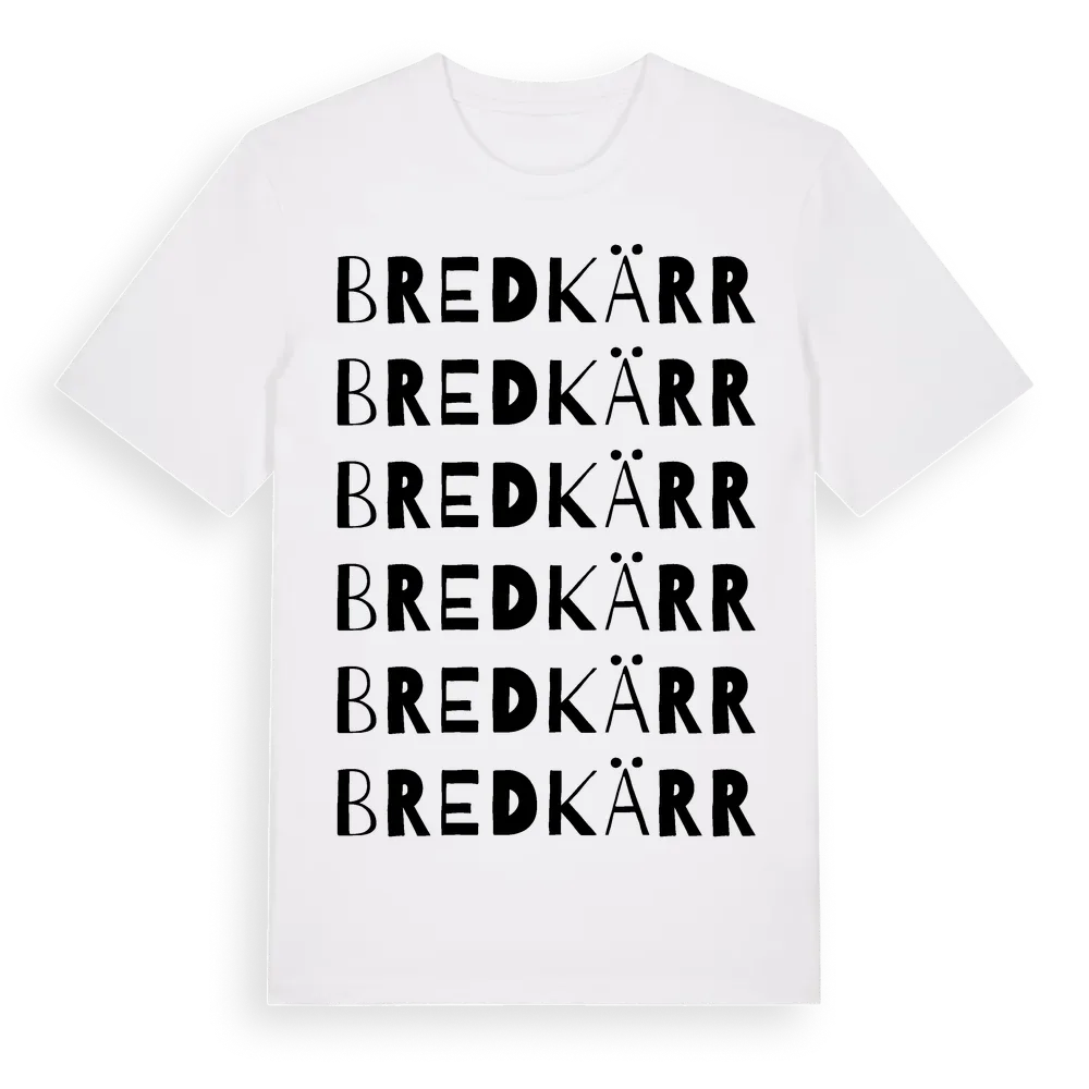 Bredkärr ordlek t-shirt är inspirerad av byn Bredkärr i Jönköpings län, Sverige. Tröjan är designad för dig som har en speciell koppling till platsen – oavsett om du bor här, har rötterna här eller bara älskar Bredkärr.