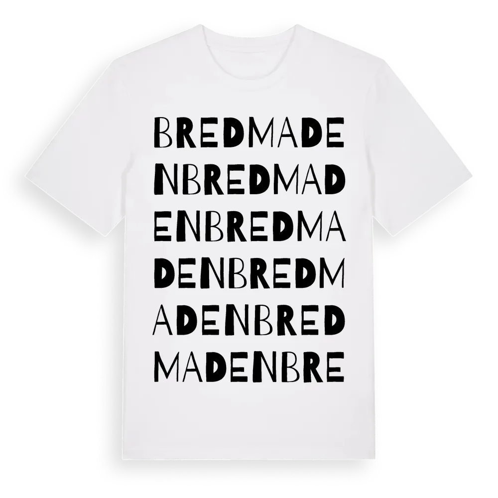 Bredmaden ordlek t-shirt är inspirerad av Bredmaden i Jönköpings län, Sverige. Tröjan är designad för dig som har en speciell koppling till platsen – oavsett om du bor här, har rötterna här eller bara älskar Bredmaden.