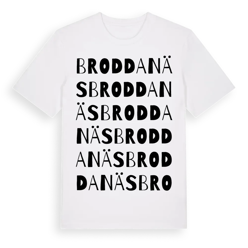 En ordlek byggd på Broddanäss namn. Subtilt och klurig – ett motiv som bara de som verkligen känner platsen fullt ut förstår. Premium bomull, unisex – från Broddanäs i Jönköpings län.
