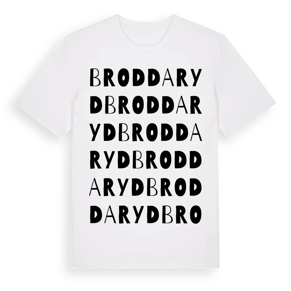 Broddaryd ordlek t-shirt är inspirerad av byn Broddaryd i Jönköpings län, Sverige. Tröjan är designad för dig som har en speciell koppling till platsen – oavsett om du bor här, har rötterna här eller bara älskar Broddaryd.