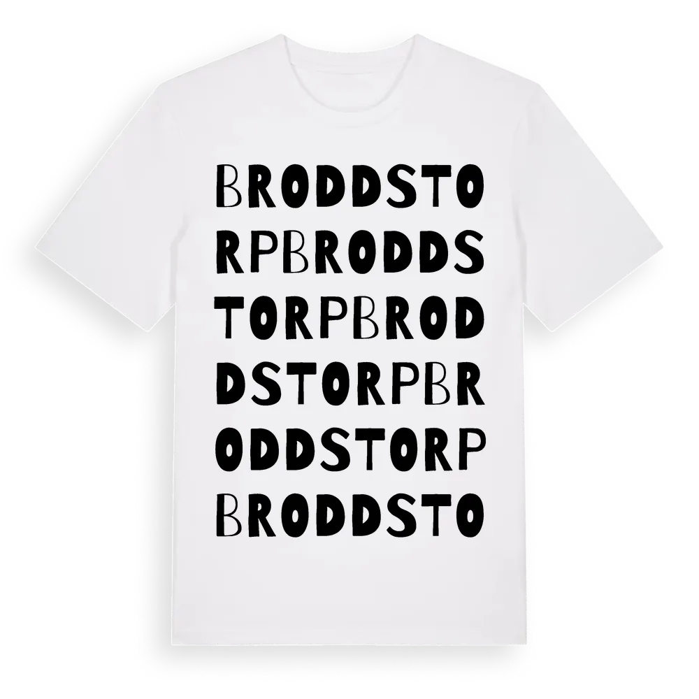 Broddstorp ordlek t-shirt är inspirerad av Broddstorp i Jönköpings län, Sverige. Tröjan är designad för dig som har en speciell koppling till platsen – oavsett om du bor här, har rötterna här eller bara älskar Broddstorp.