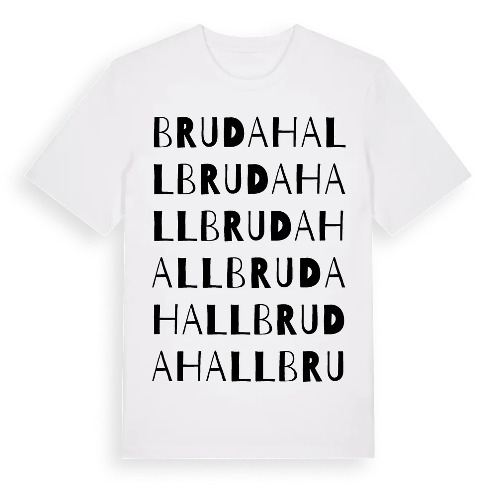 Brudahall ordlek t-shirt är inspirerad av Brudahall i Jönköpings län, Sverige. Tröjan är designad för dig som har en speciell koppling till platsen – oavsett om du bor här, har rötterna här eller bara älskar Brudahall.