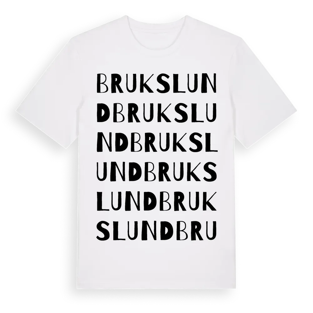 Brukslund ordlek t-shirt är inspirerad av Brukslund i Jönköpings län, Sverige. Tröjan är designad för dig som har en speciell koppling till platsen – oavsett om du bor här, har rötterna här eller bara älskar Brukslund.