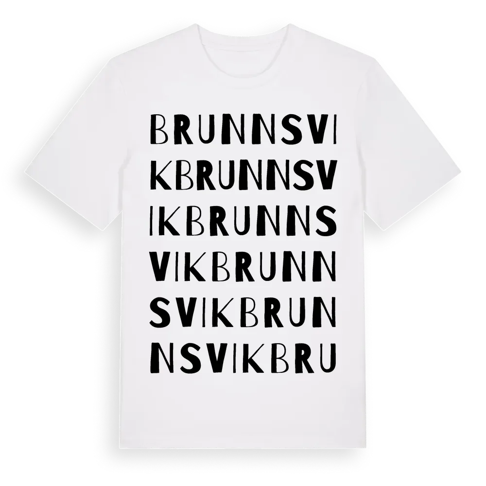 Brunnsvik ordlek t-shirt är inspirerad av Brunnsvik i Jönköpings län, Sverige. Tröjan är designad för dig som har en speciell koppling till platsen – oavsett om du bor här, har rötterna här eller bara älskar Brunnsvik.