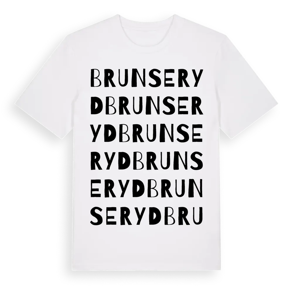 Brunseryd ordlek t-shirt är inspirerad av byn Brunseryd i Jönköpings län, Sverige. Tröjan är designad för dig som har en speciell koppling till platsen – oavsett om du bor här, har rötterna här eller bara älskar Brunseryd.