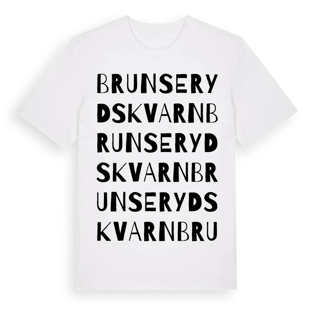 Brunseryds Kvarn ordlek t-shirt är inspirerad av Brunseryds Kvarn i Jönköpings län, Sverige. Tröjan är designad för dig som har en speciell koppling till platsen – oavsett om du bor här, har rötterna här eller bara älskar Brunseryds Kvarn.