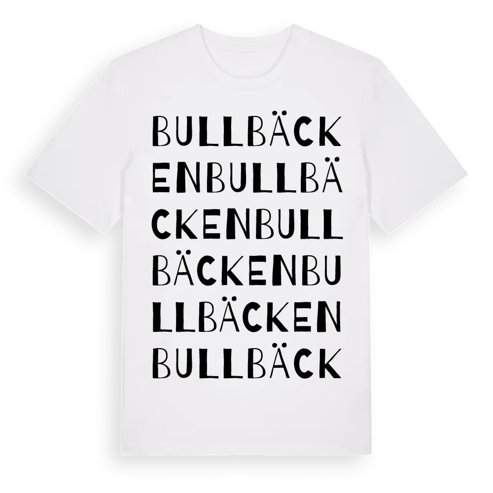 Bullbäcken ordlek t-shirt är inspirerad av Bullbäcken i Jönköpings län, Sverige. Tröjan är designad för dig som har en speciell koppling till platsen – oavsett om du bor här, har rötterna här eller bara älskar Bullbäcken.
