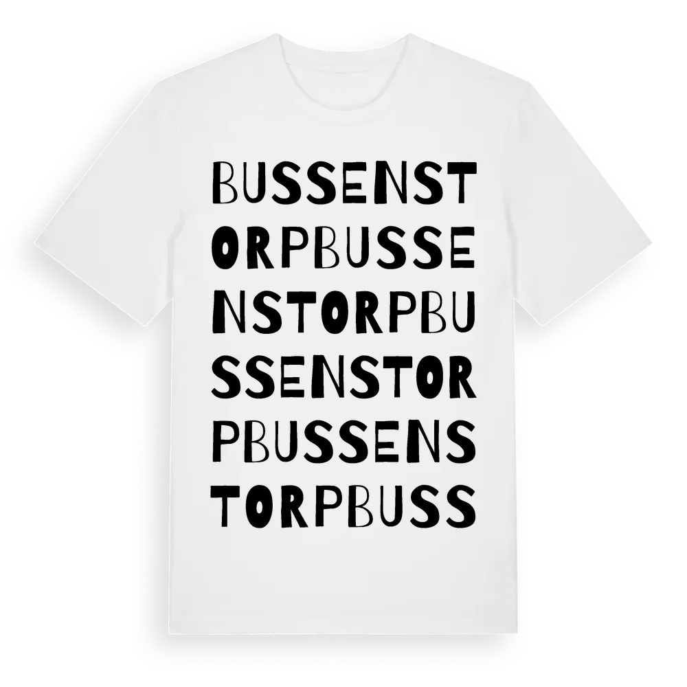 Bussenstorp ordlek t-shirt är inspirerad av Bussenstorp i Jönköpings län, Sverige. Tröjan är designad för dig som har en speciell koppling till platsen – oavsett om du bor här, har rötterna här eller bara älskar Bussenstorp.
