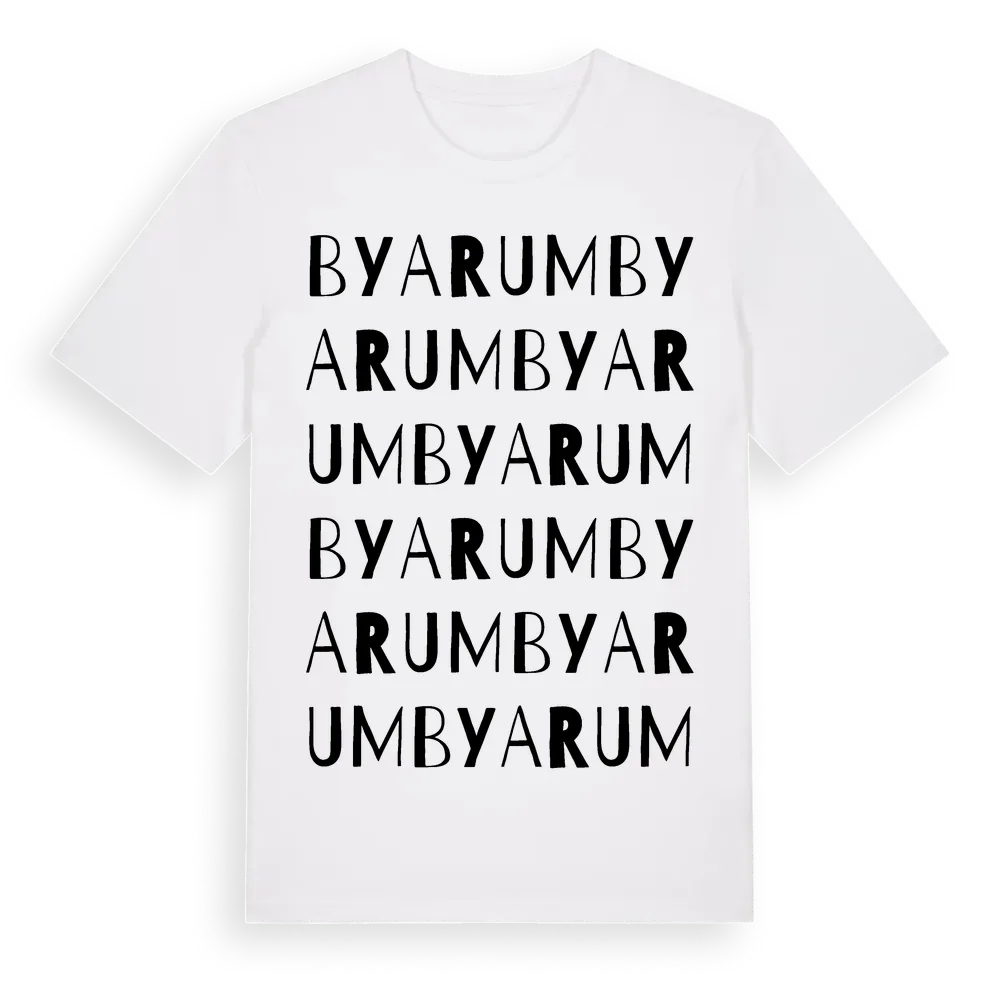 En ordlek byggd på Byarums namn. Subtilt och klurig – ett motiv som bara de som verkligen känner platsen fullt ut förstår. Premium bomull, unisex – från byn Byarum i Jönköpings län.