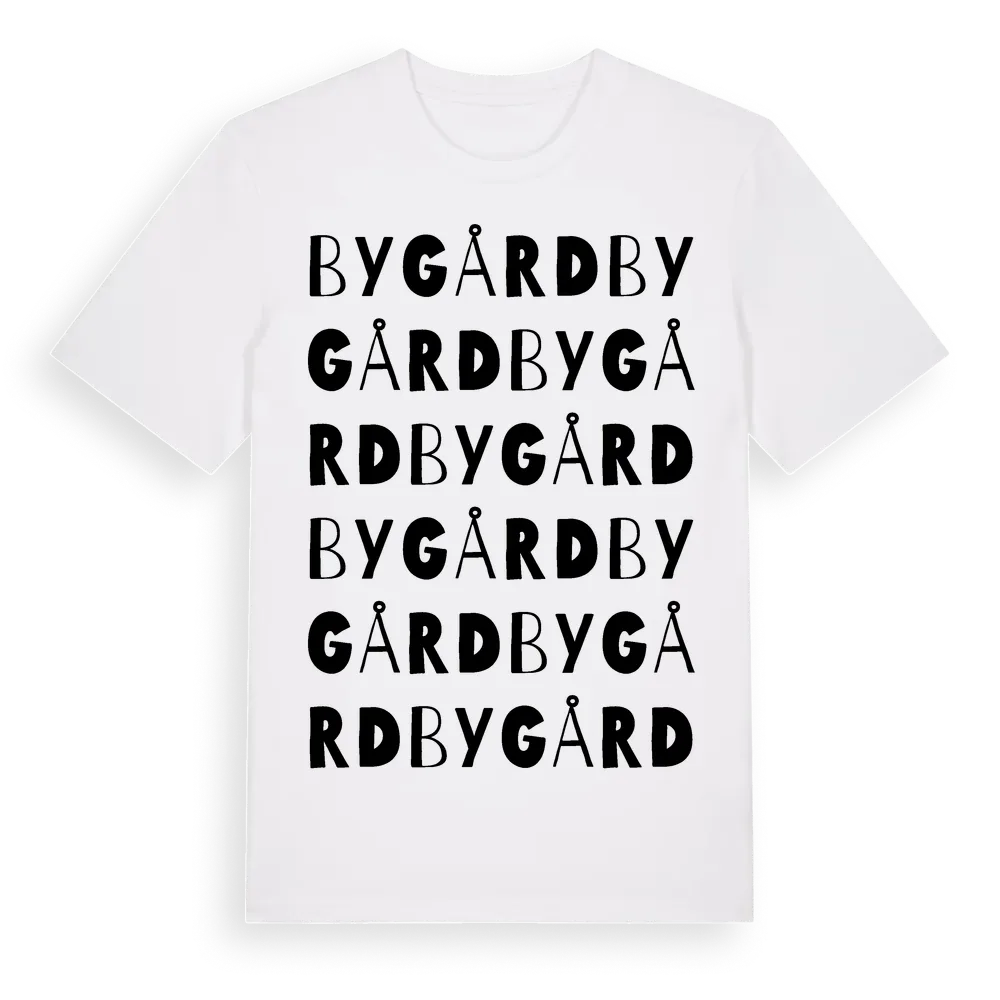 Bygård ordlek t-shirt är inspirerad av Bygård i Jönköpings län, Sverige. Tröjan är designad för dig som har en speciell koppling till platsen – oavsett om du bor här, har rötterna här eller bara älskar Bygård.