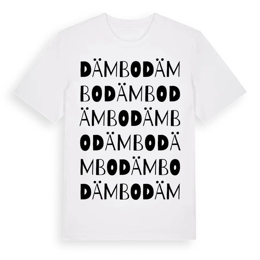 Dämbo ordlek t-shirt är inspirerad av Dämbo i Jönköpings län, Sverige. Tröjan är designad för dig som har en speciell koppling till platsen – oavsett om du bor här, har rötterna här eller bara älskar Dämbo.