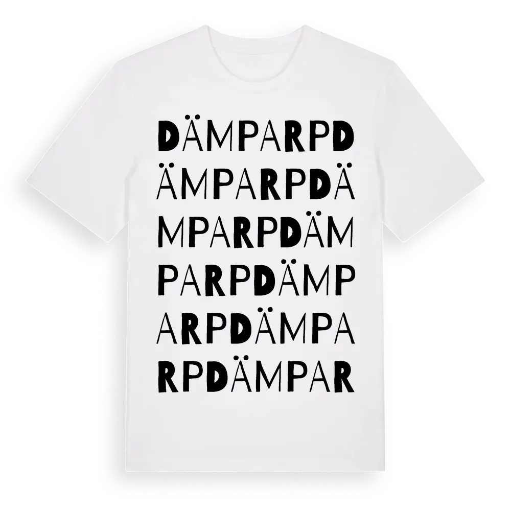 Dämparp ordlek t-shirt är inspirerad av Dämparp i Jönköpings län, Sverige. Tröjan är designad för dig som har en speciell koppling till platsen – oavsett om du bor här, har rötterna här eller bara älskar Dämparp.