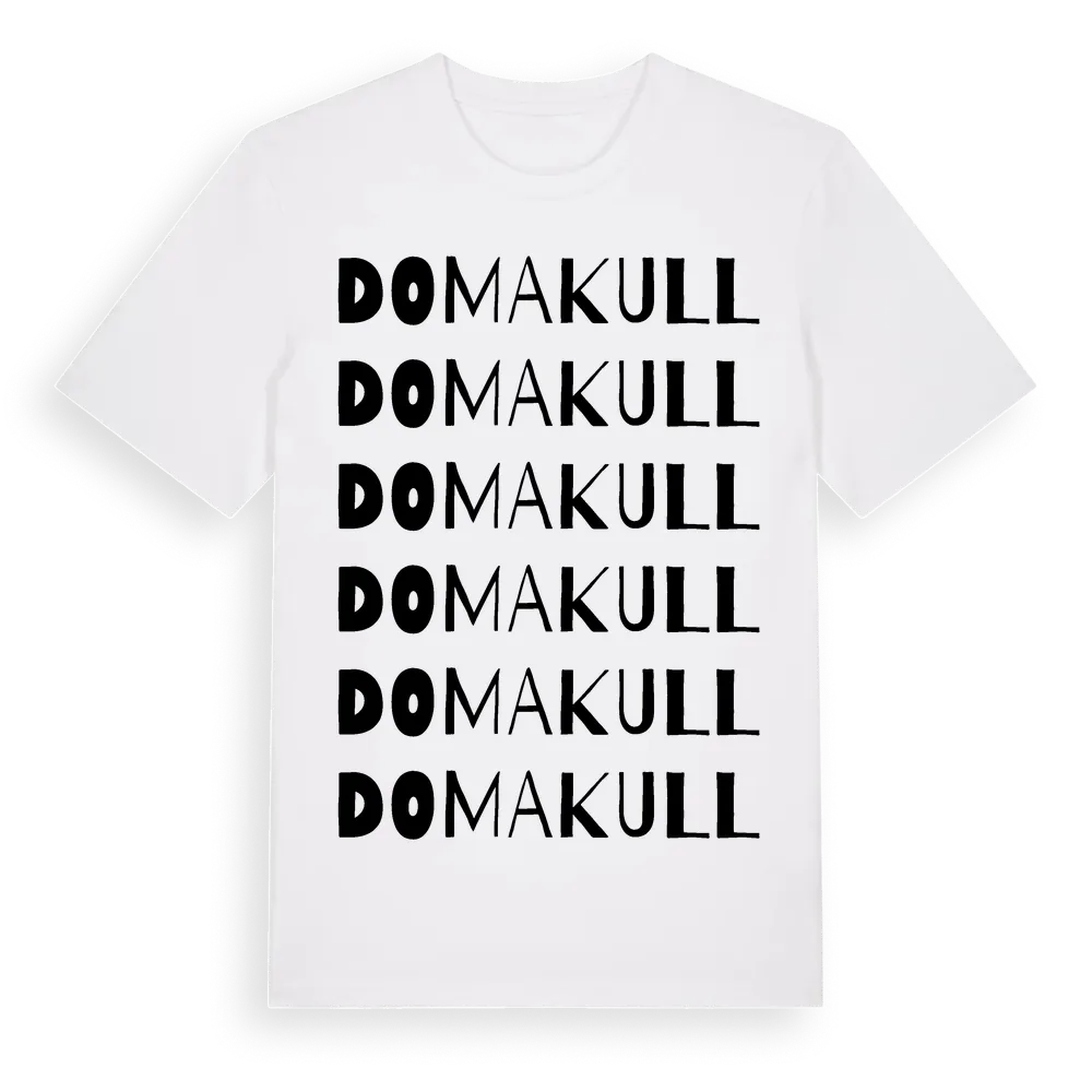 Domakull ordlek t-shirt är inspirerad av byn Domakull i Jönköpings län, Sverige. Tröjan är designad för dig som har en speciell koppling till platsen – oavsett om du bor här, har rötterna här eller bara älskar Domakull.
