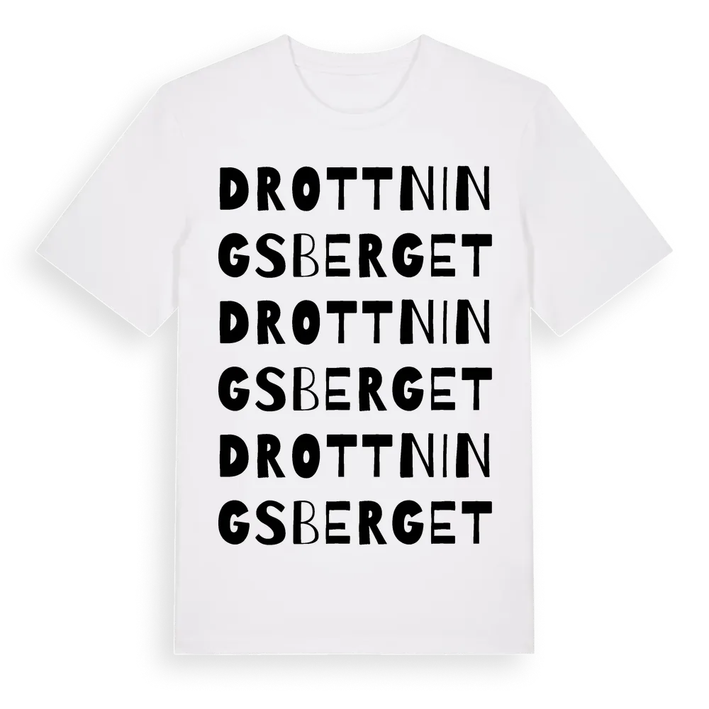 Drottningsberget ordlek t-shirt är inspirerad av Drottningsberget i Jönköpings län, Sverige. Tröjan är designad för dig som har en speciell koppling till platsen – oavsett om du bor här, har rötterna här eller bara älskar Drottningsberget.
