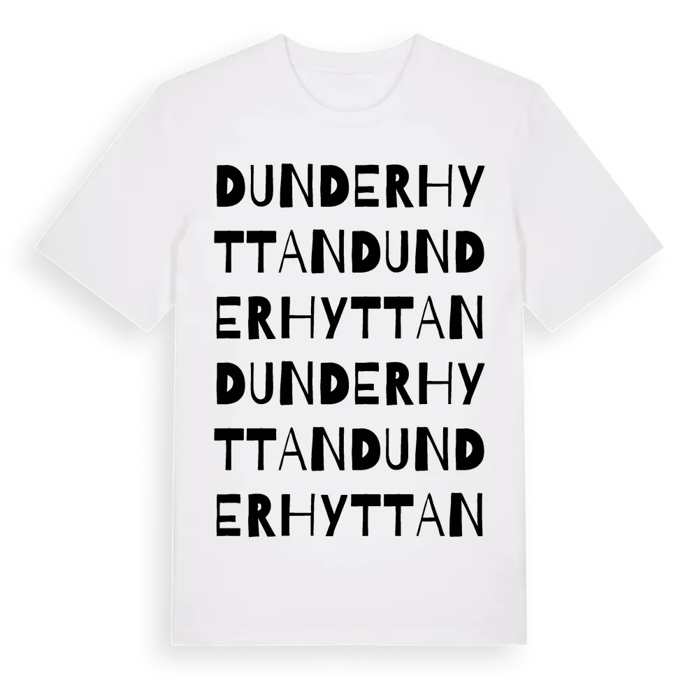 Dunderhyttan ordlek t-shirt är inspirerad av Dunderhyttan i Jönköpings län, Sverige. Tröjan är designad för dig som har en speciell koppling till platsen – oavsett om du bor här, har rötterna här eller bara älskar Dunderhyttan.
