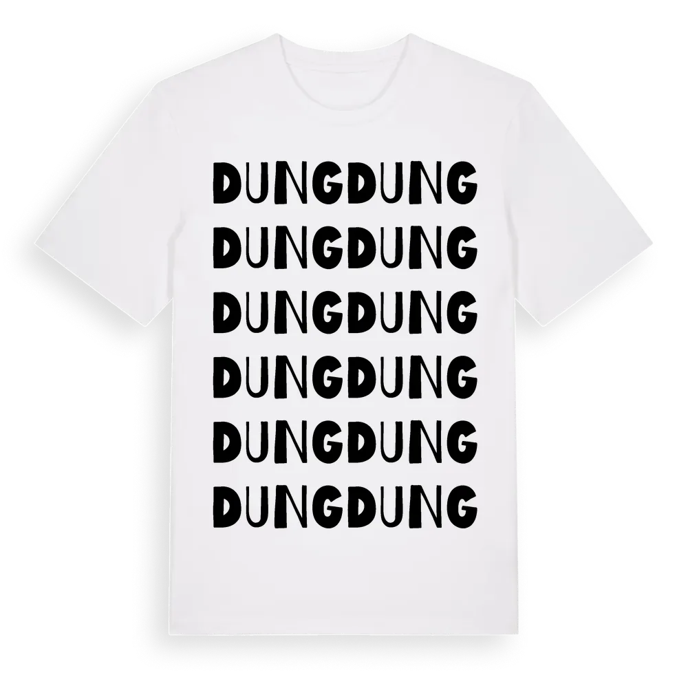 Dung ordlek t-shirt är inspirerad av byn Dung i Jönköpings län, Sverige. Tröjan är designad för dig som har en speciell koppling till platsen – oavsett om du bor här, har rötterna här eller bara älskar Dung.