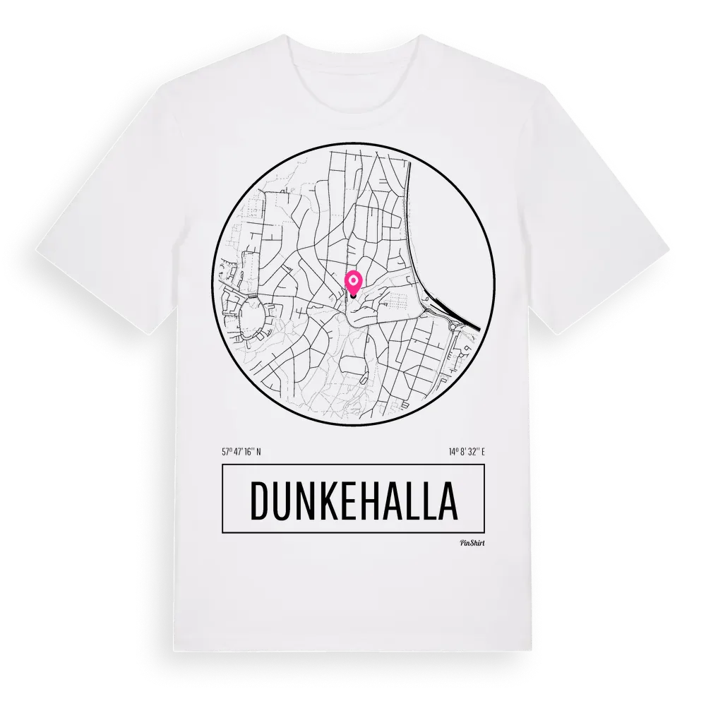 Dunkehalla t-shirt är inspirerad av stadsdelen Dunkehalla i Jönköpings län, Sverige. Tröjan är designad för dig som har en speciell koppling till platsen – oavsett om du bor här, har rötterna här eller bara älskar Dunkehalla.