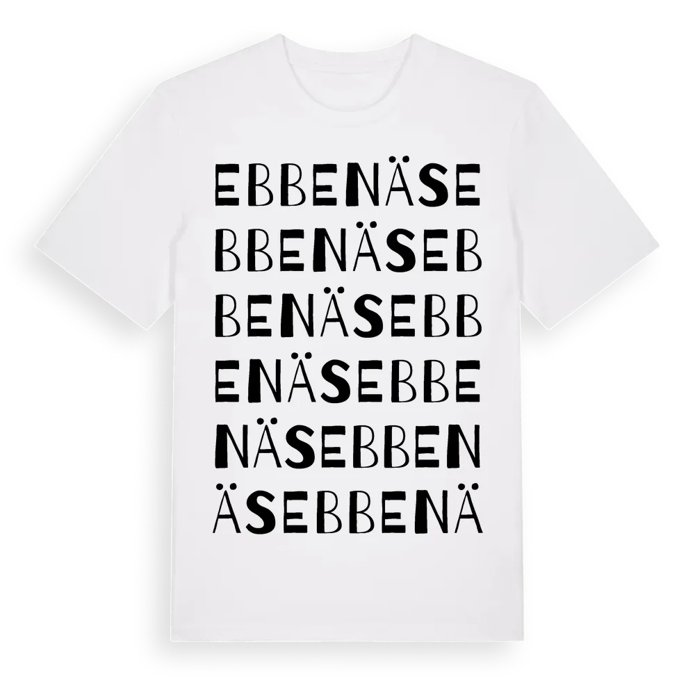 En ordlek byggd på Ebbenäss namn. Subtilt och klurig – ett motiv som bara de som verkligen känner platsen fullt ut förstår. Premium bomull, unisex – från Ebbenäs i Jönköpings län.